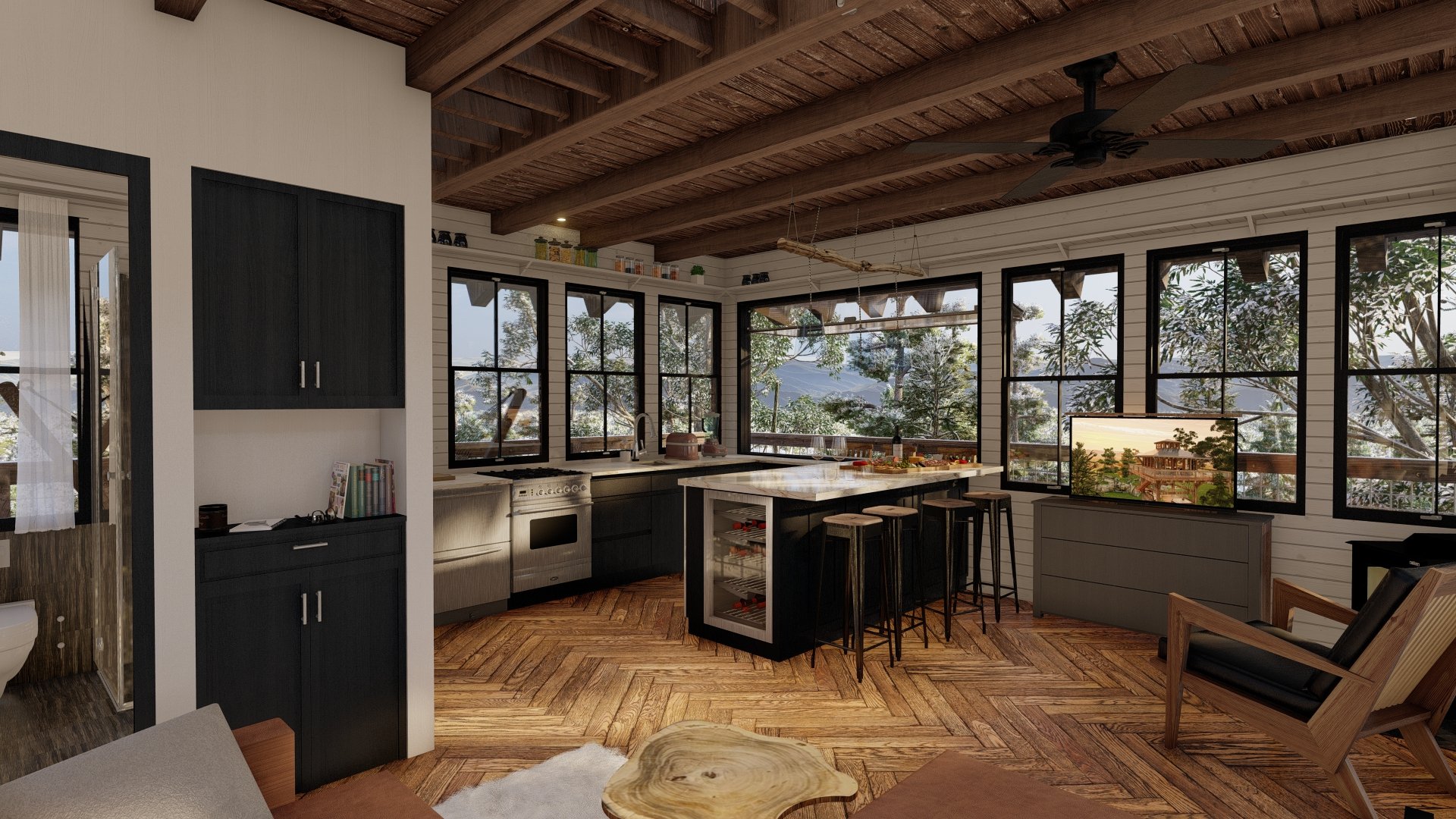 With 360 degree views and modern twists on a classic design, the Lookout Towers offer a sophisticated yet cozy space to call home. Inspired by the classic “Fire Towers” design, this efficient floor plan was designed with simplicity in mind to maximize space and style. Featuring elegant architectural touches and high-end finishes like quality appliances from Miele and Pella® aluminum clad wood windows, the Tower is the perfect Vacation Rental Property for those looking to live simply and luxuriously.